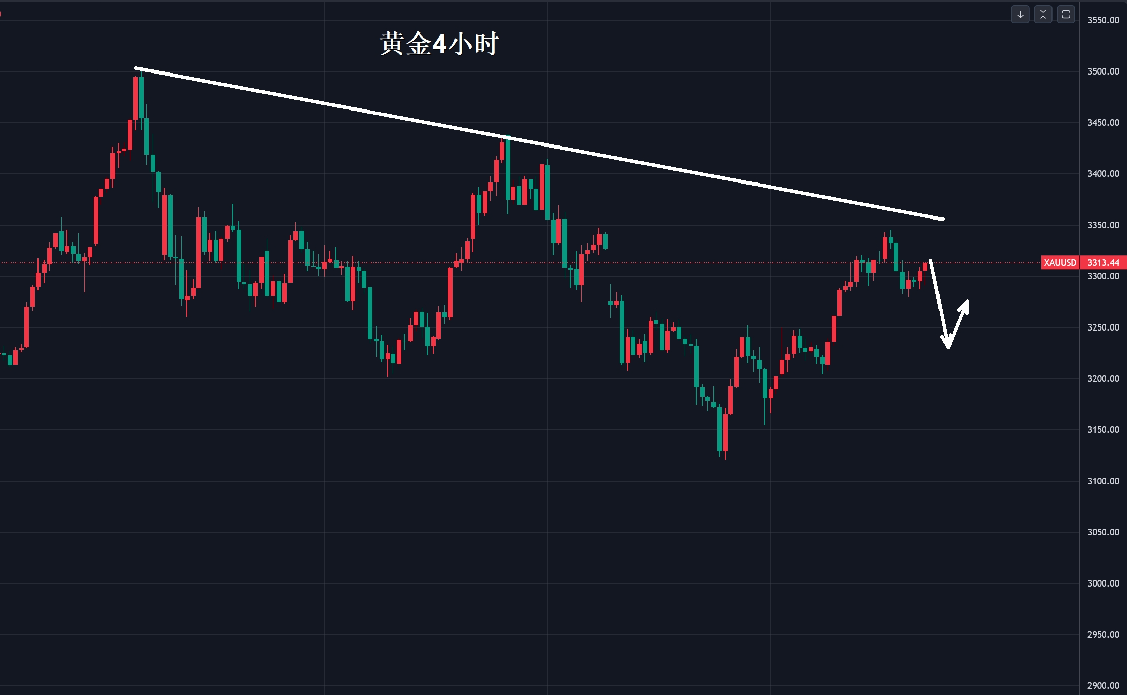 周四,欧盘的时候金价快速下跌,自3345美元快速跌到3280美元,这个下跌的特点就是不延续,一口气直接跌完了,剩下的时间就是反弹或震荡,这也是震荡或上涨行情当中最典型的特点之一。
