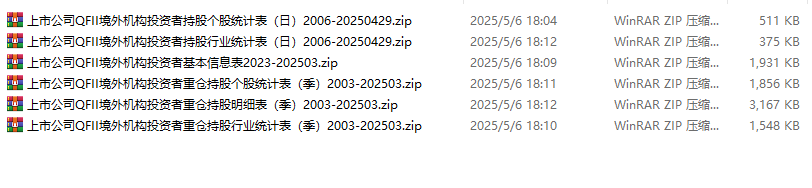 上市公司QFII境外机构投资者重仓持股个股统计表(季)2003-202503.zip