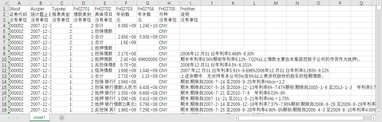 证券代码 统计截止日期 报表类型 借款类别 具体项目 年初数 年末数 币种 说明