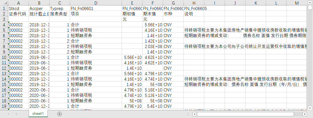 证券代码 统计截止日期 报表类型 项目 期初值 期末值 币种 说明