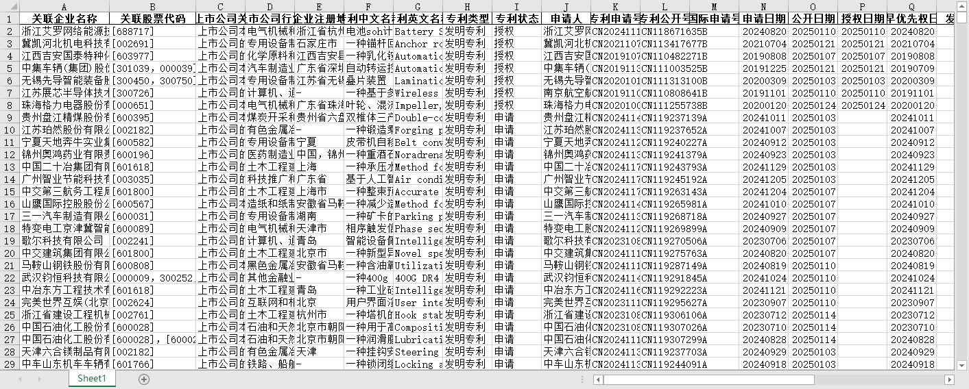 上市公司专利数据1985-202502含分子公司发明实用新型专利明细信息IPCCPC分类申请公开号