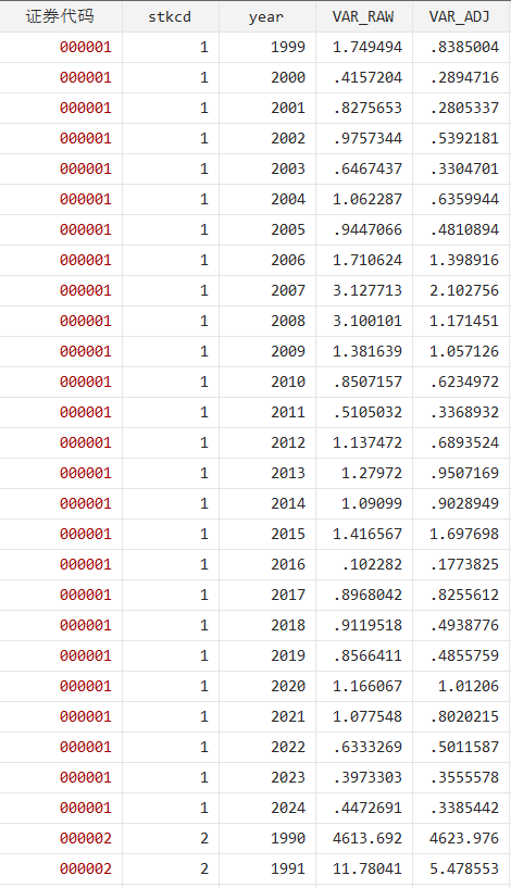 - 也使用了个股原始回报计算的方差VAR代替VAR_ADJ,可以用作稳健性检验。