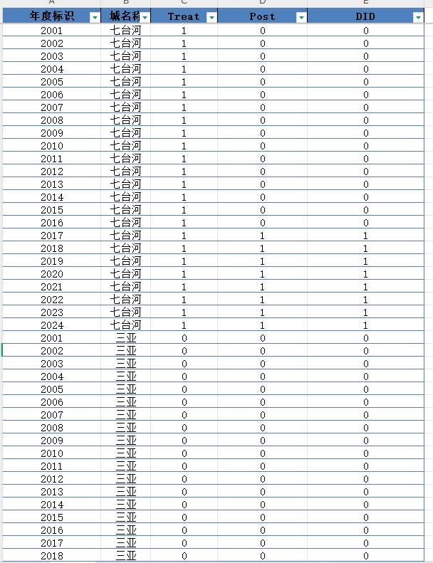 | Treat | 是否为试点城市(1为是,0为否) | 二元变量 |