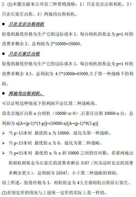 我觉着答案中的A想表达消费者剩余的意思,但是两次消费者剩余不同,该用P的式子表达,然后再算,这样算的临界值就不是答案中的15/8了,不明白呀