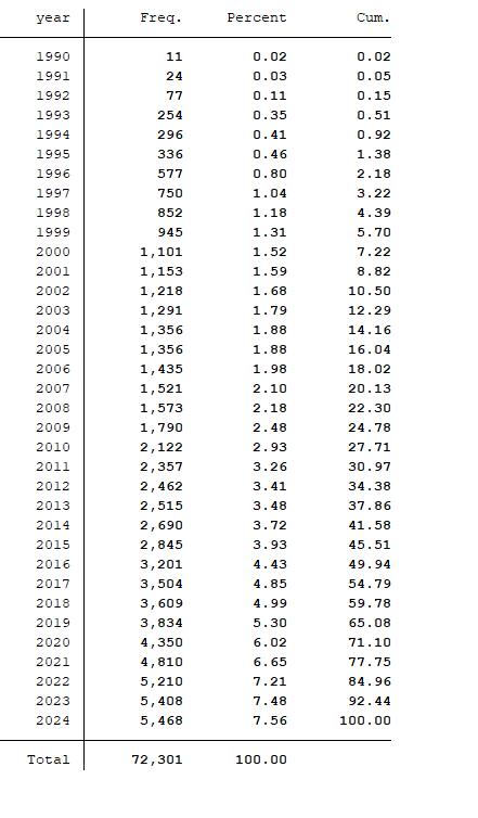 经管之家:momingiqmiao7 欢迎关注,分享更多实用的数据,独家发布,严禁转载获利,转载必究,有任何问题在可以帖子下方回复,及时回复 批量购买可享优惠 【关注】【帖子索引2023年】【帖子索引2022年】【帖子索引2021年】【使用常见问题】【点击查看更多帖子】【Stata软件下载】【Stata免费学习资料】