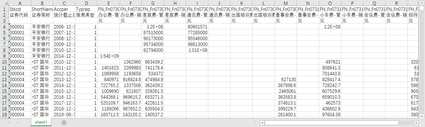证券代码证券代码 证券简称 统计截止日期 报表类型 办公费-管理费用 办公费-销售费用 差旅费-管理费用 差旅费-销售费用 通讯费-管理费用 通讯费-销售费用 出国培训费-管理费用 出国培训费-销售费用 董事会费-管理费用 董事会费-销售费用 小车费-管理费用 小车费-销售费用 会议费-管理费用 会议费-销售费用 招待费-管理费用 招待费-销售费用