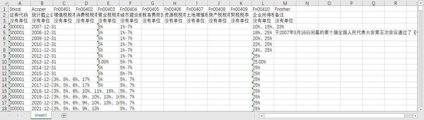 Fn00401 [增值税税率] - 企业披露的增值税名义税率