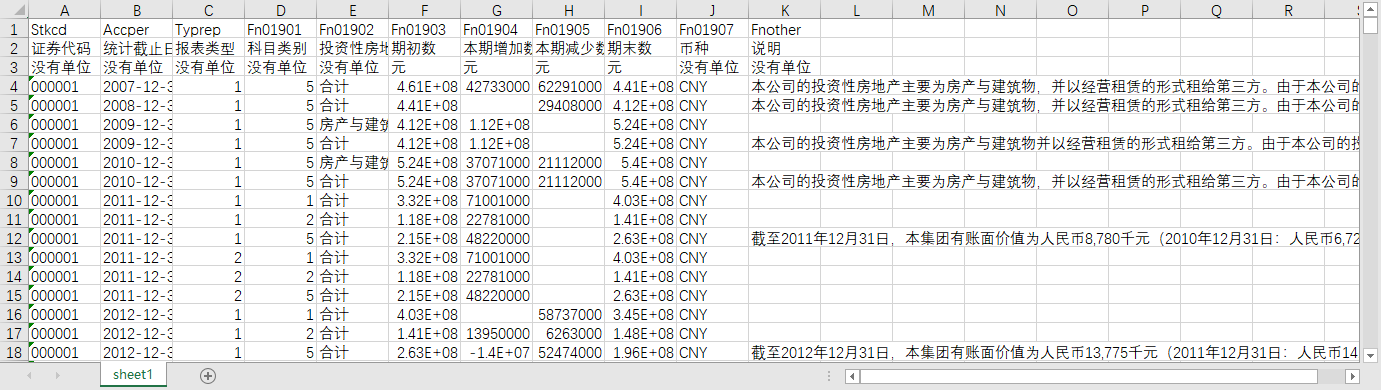 证券代码 统计截止日期 报表类型 科目类别 投资性房地产项目 期初数 本期增加数 本期减少数 期末数 币种 说明