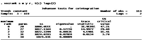 crystal8832 发表于 2015-1-26 21:18 The * indicates that this estimator has selected the number of cointegrating equations correspondi ...