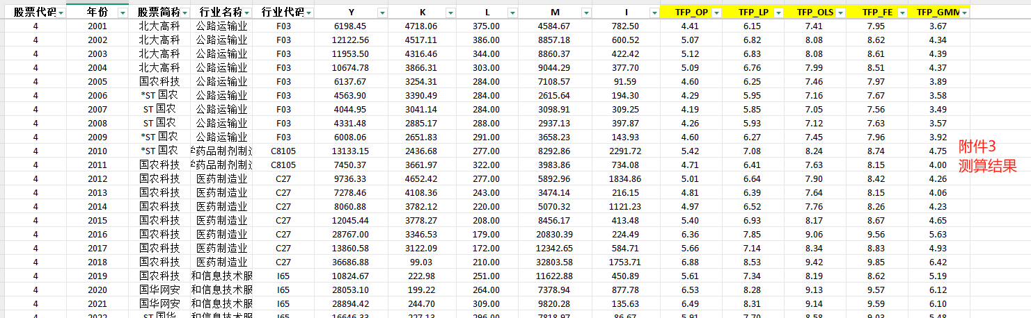 附件4 上市公司全要素生产率数据合集(含附件1、2、3)