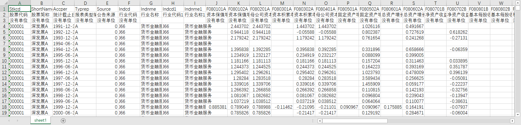 股票代码 股票简称 统计截止日期 报表类型编码 公告来源 行业代码 行业名称 行业代码1 行业名称1 资本保值增值率A 资本保值增值率B 母公司资本保值增值率 资本积累率A 资本积累率B 母公司资本积累率 固定资产增长率A 固定资产增长率B 总资产增长率A 总资产增长率B 净资产收益率增长率A 净资产收益率增长率B 基本每股收益增长率A 基本每股收益增长率B 稀释每股收益增长率A 稀释每股收益增长率B 净利润增长率A 净利润增长率B 利润总额增长率A 利润总额增长率B 营业利润增长率A 营业利润增长率B 归属于母公司净利润增长率 综合收益增长率 归属于母公司综合收益增长率 营业收入增长率A 营业收入增长率B 营业总收入增长率 营业总成本增长率 销售费用增长率 管理费用增长率 应计项目 每股经营活动产生的净流量增长率A 每股经营活动产生的净流量增长率B 经营活动产生的净流量增长率A 经营活动产生的净流量增长率B 投资活动产生的现金流量增长率A 投资活动产生的现金流量增长率B 筹资活动产生的现金流量增长率A 筹资活动产生的现金流量增长率B 可持续增长率 所有者权益增长率A 所有者权益增长率B 每股净资产增长率B 每股净资产增长率A 所有者权益增长率C 每股净资产增长率C 净资产收益率增长率C 净利润增长率C 营业收入增长率C 总资产增长率C 利润总额增长率C 固定资产增长率C 基本每股收益增长率C 营业利润增长率C 可持续增长率2 可持续增长率3