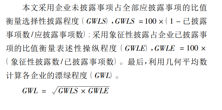 漂绿程度通常指企业对外披露的ESG行为(如碳中和承诺、绿色技术投资)与实际环保绩效(如碳排放、污染治理效果)之间的不匹配程度。同构指数反映行业内企业是否因政策压力、投资者需求或竞争压力而趋同。