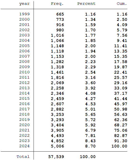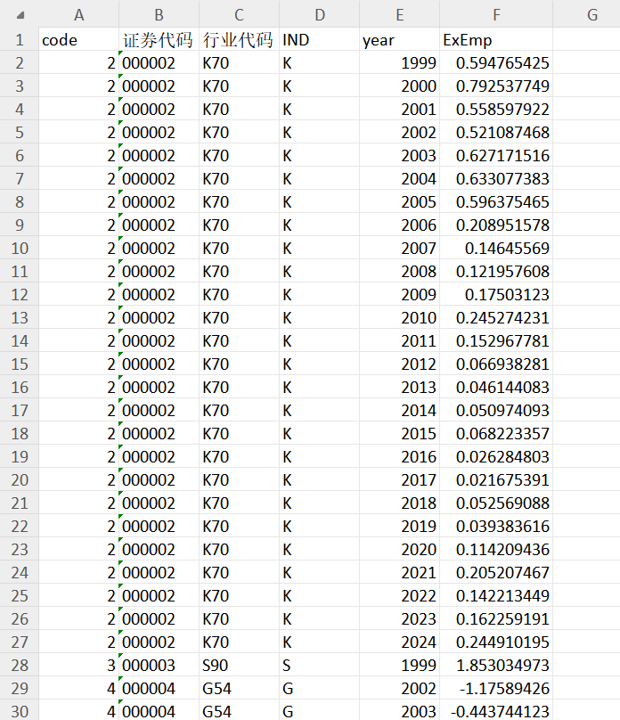 样本选择:全部A股1999-2024年数据(“员工人数”数据是从1999年开始,所以数据起点选择为1999年)