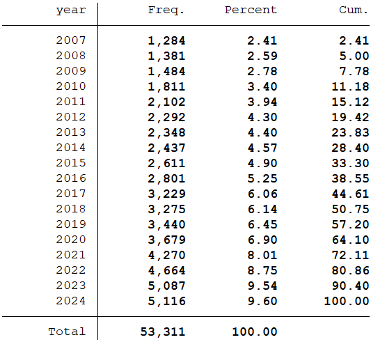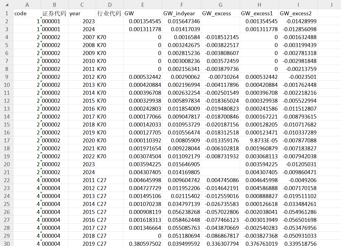 样本选择:全部A股2007-2024年数据(2007年新会计准则首次要求企业将商誉作为资产单独列报,所以数据起点选择为2007年)