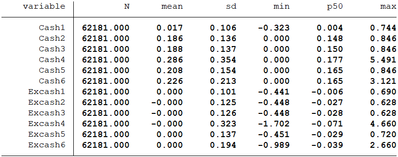 其中,公司实际持有的现金水平(Cash)有以下六种度量方式: