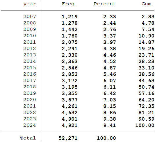 分年份数据量统计: