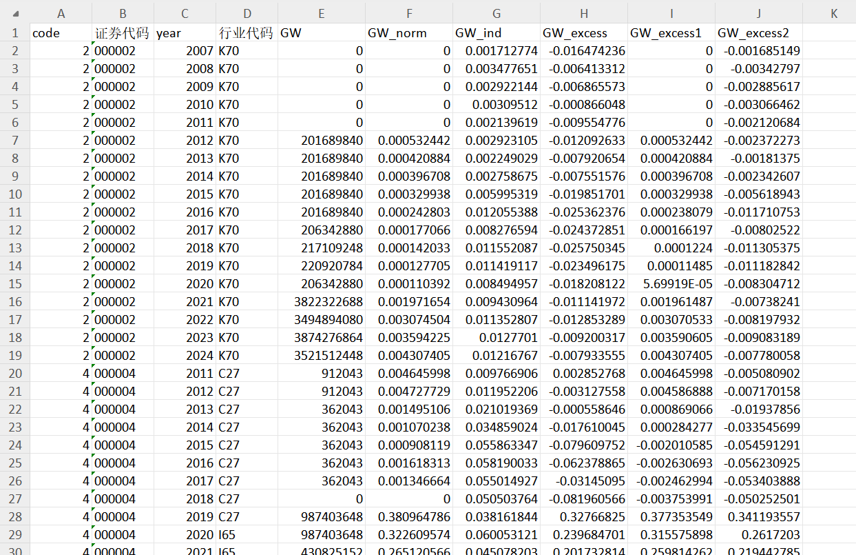 ②经行业均值调整的商誉(GW_excess2)