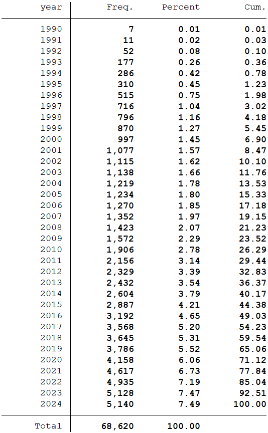 与大多数文献相同,做了如下的处理:剔除金融行业的样本;剔除当年年末被ST、*ST或PT的上市公司