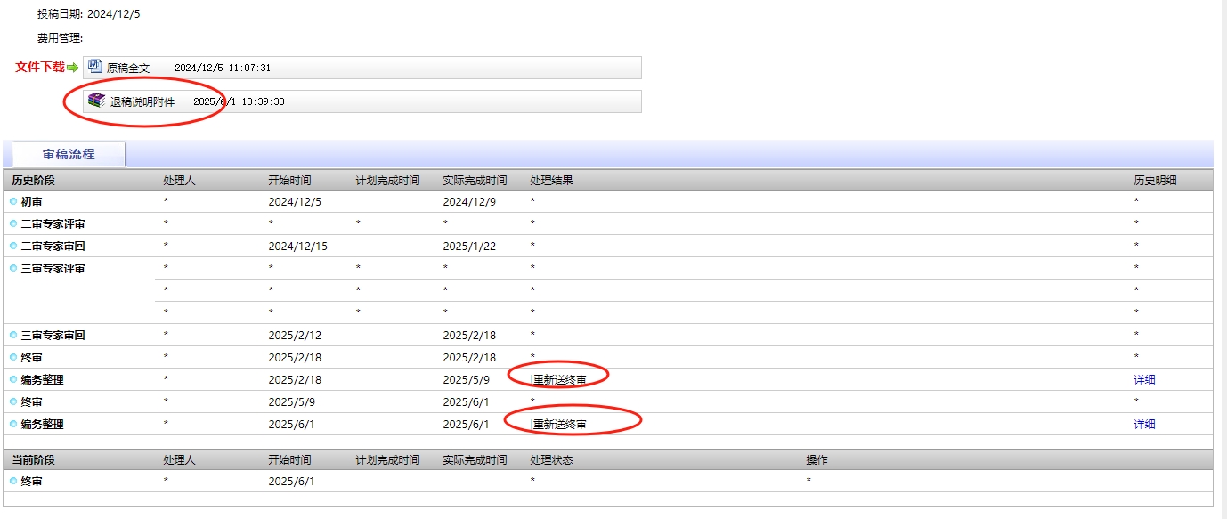 我不是学友 发表于 2025-6-1 23:09 修改过一次,不过是修改后再审,但后面出现了两次重新送终审。第二次重新送终审上传了一个退稿说明附件,但 ...