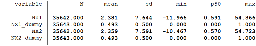 第五,计算上市公司薪酬粘性的中位数,高于中位数水平的企业定义为薪酬粘性高的企业,NX_dummy取值为1;低于中位数水平的企业定义为薪酬粘性低的企业,NX_dummy取值为0。