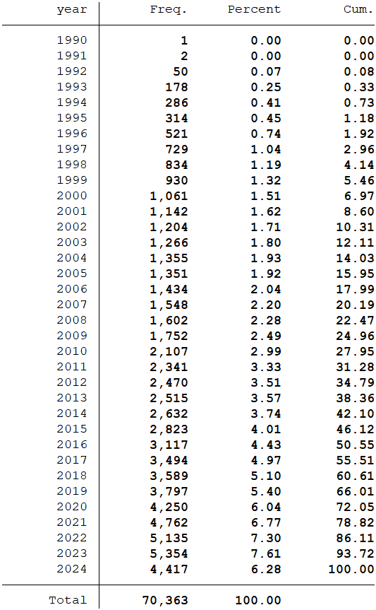 样本选择:全部A股1990-2024年数据,未作任何剔除处理