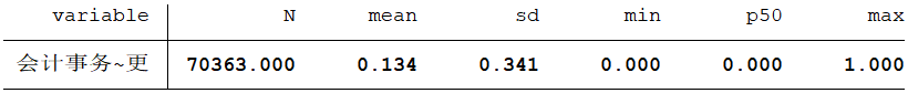 会计事务所变更是虚拟变量,指公司是否变更会计师事务所,若公司对聘任事务所进行了变更,则会计事务所变更取值为1,否则取值为0。