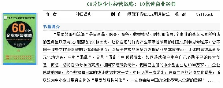 - 60分钟企业经营战略: 10倍速商业经典【3个论坛币】