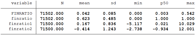 企业是否购买金融资产(finratio):虚拟变量,当金融资产大于0时取值为1,否则为0