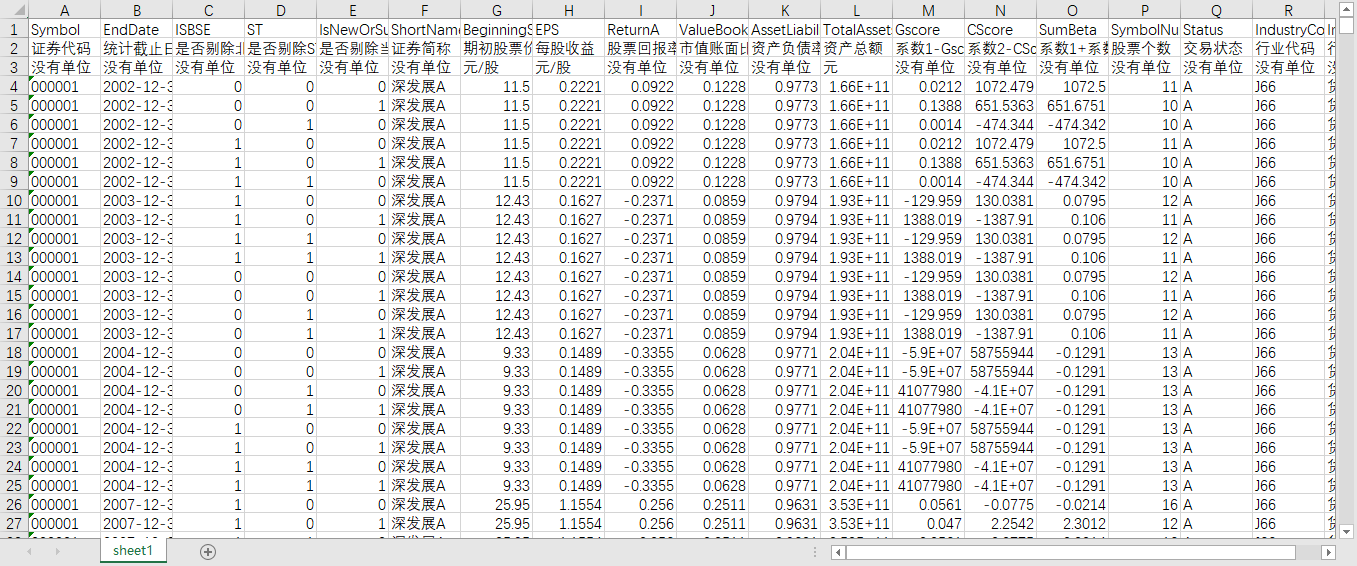 证券代码 统计截止日期 是否剔除北交所上市公司 是否剔除ST或*ST股 是否剔除当年新上市,已经退市或被暂停上市的公司 证券简称 期初股票价格 每股收益 股票回报率 市值账面比 资产负债率 资产总额 系数1-Gscore 系数2-CScore 系数1+系数2 股票个数 交易状态 行业代码 行业名称