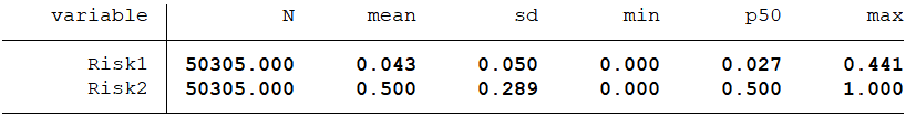 另外,由于按这种方法计算的经营风险不服从正态分布,所以本文计算了代表经营风险的息税折旧摊销前利润率标准差的累积分布概率,并以此衡量经营风险(Risk2)。
