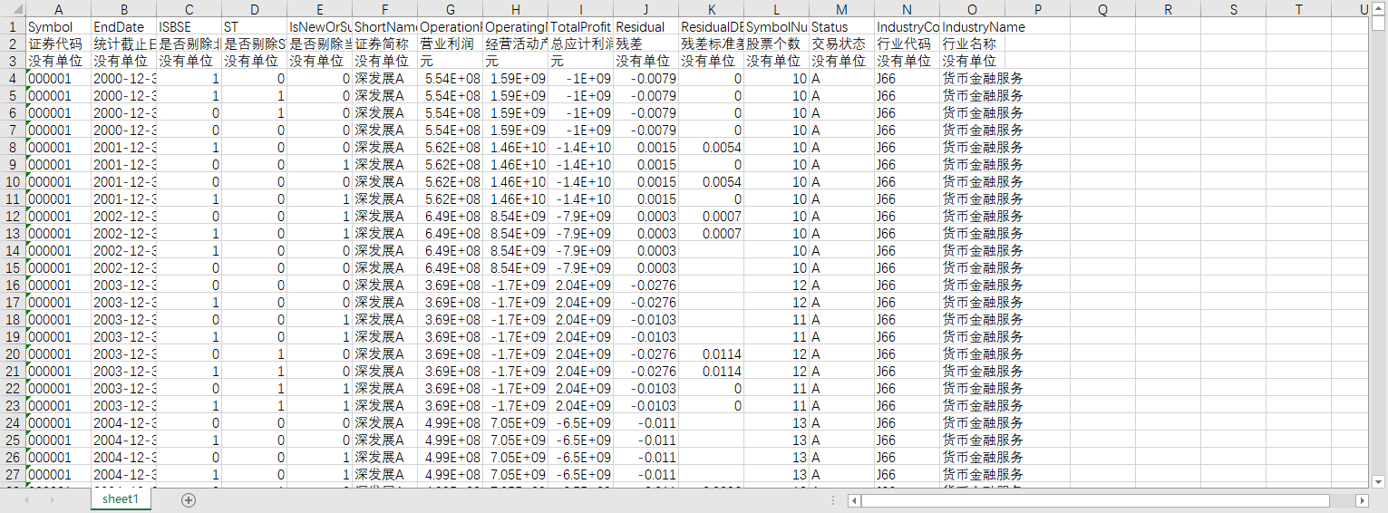 证券代码 统计截止日期 是否剔除北交所上市公司 是否剔除ST或*ST股 是否剔除当年新上市,已经退市或被暂停上市的公司 证券简称 营业利润 经营活动产生的现金流量净额 总应计利润 残差 残差标准差 股票个数 交易状态 行业代码 行业名称