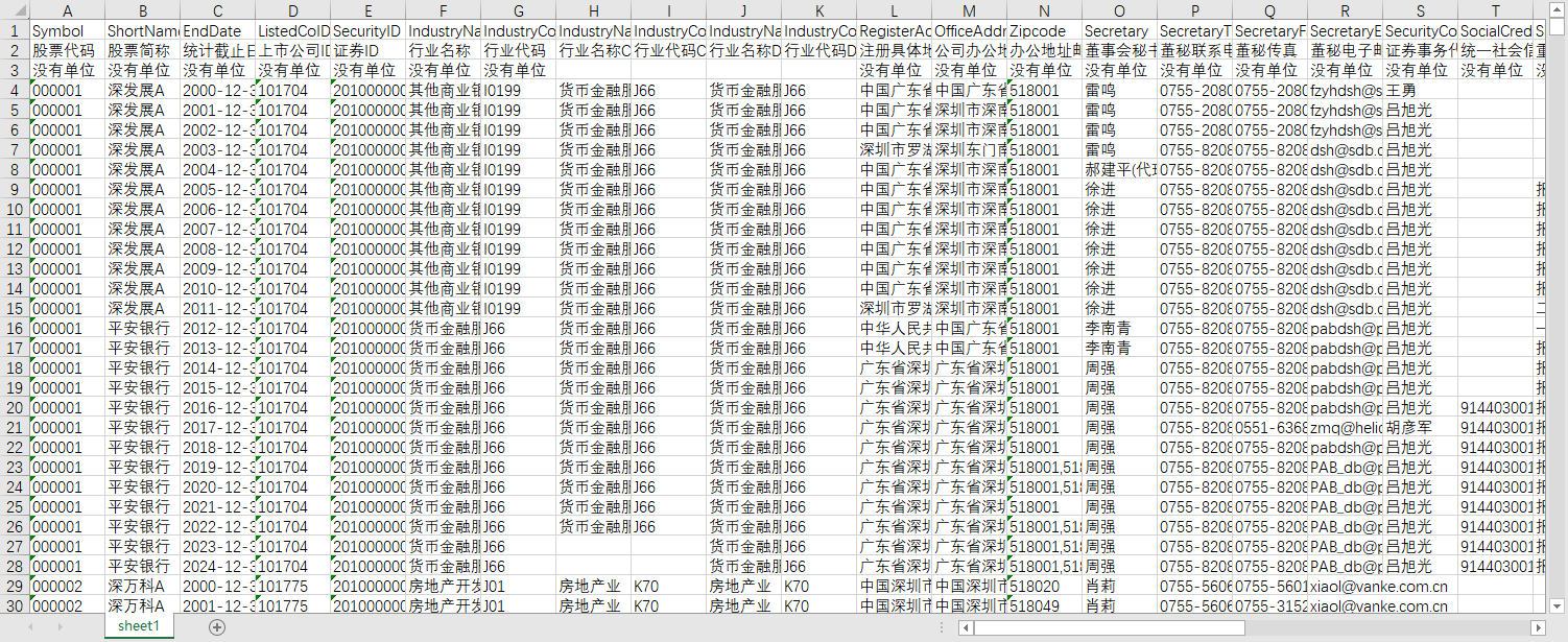 上市公司基本信息年度表2000-2024所属省份城市办公注册地经度纬度行业名称成立上市日期董秘