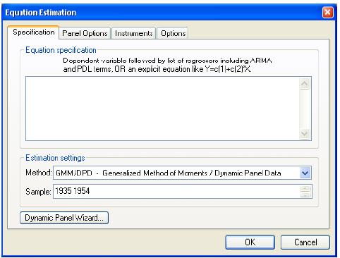 郑光凤 发表于 2013-1-20 18:03 在QUICK - EQUATION ESTIMATION - GMM 中没有找到PANAL OPTIONS,高手帮忙解决下,是我EVIEWS6.0软件的问题 ...