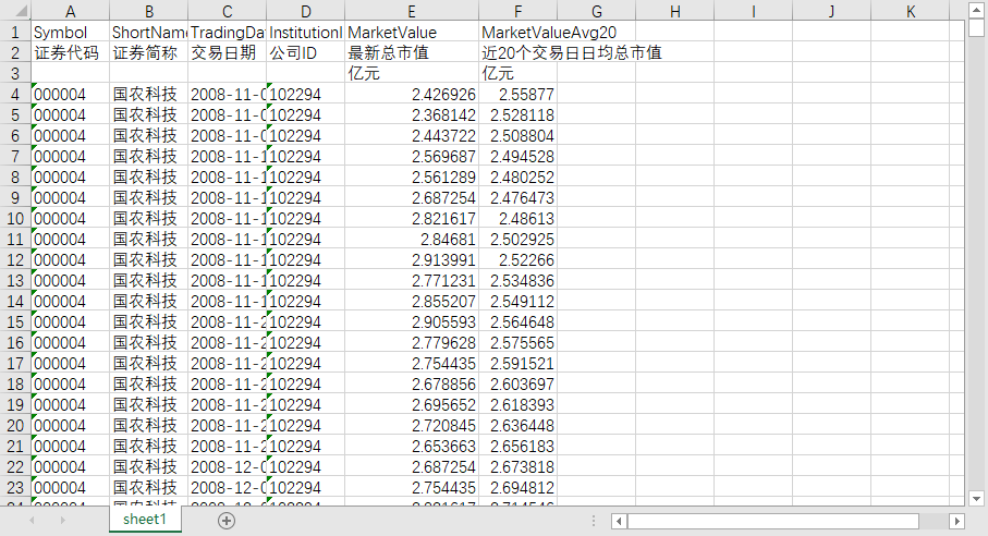 MarketValueAvg20 [近20个交易日日均总市值] - 交易日期往前推19个交易日计算这20个交易日内算数平均总市值