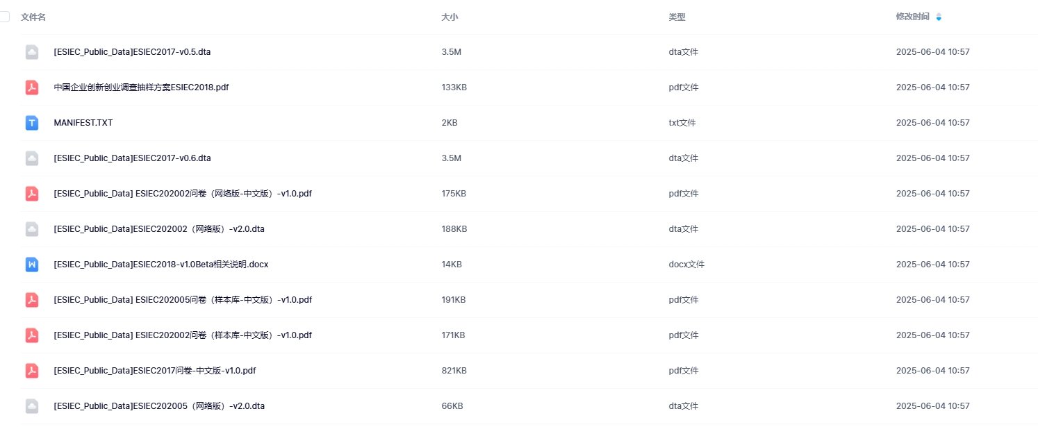 一、数据介绍数据名称:中国企业创新创业调查数据