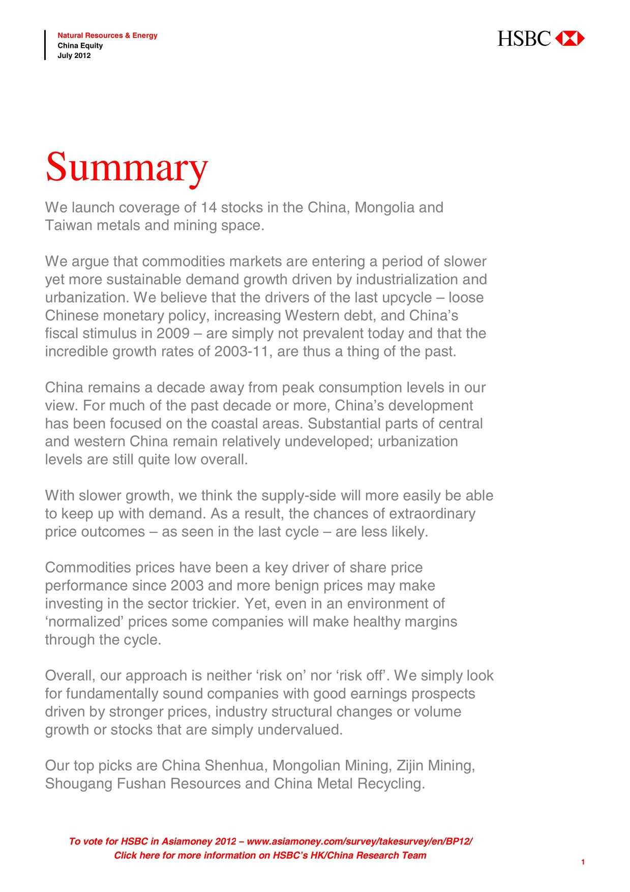 [PDF][281P] 20120731-匯豐HSBC-金屬礦物市場報告(Metals & Mining),檔案有5.1MB, 給需要的伙伴