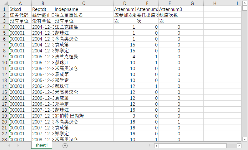 上市公司独立董事出席会议情况文件2001-2024独立董事姓名应参加次数缺席次数