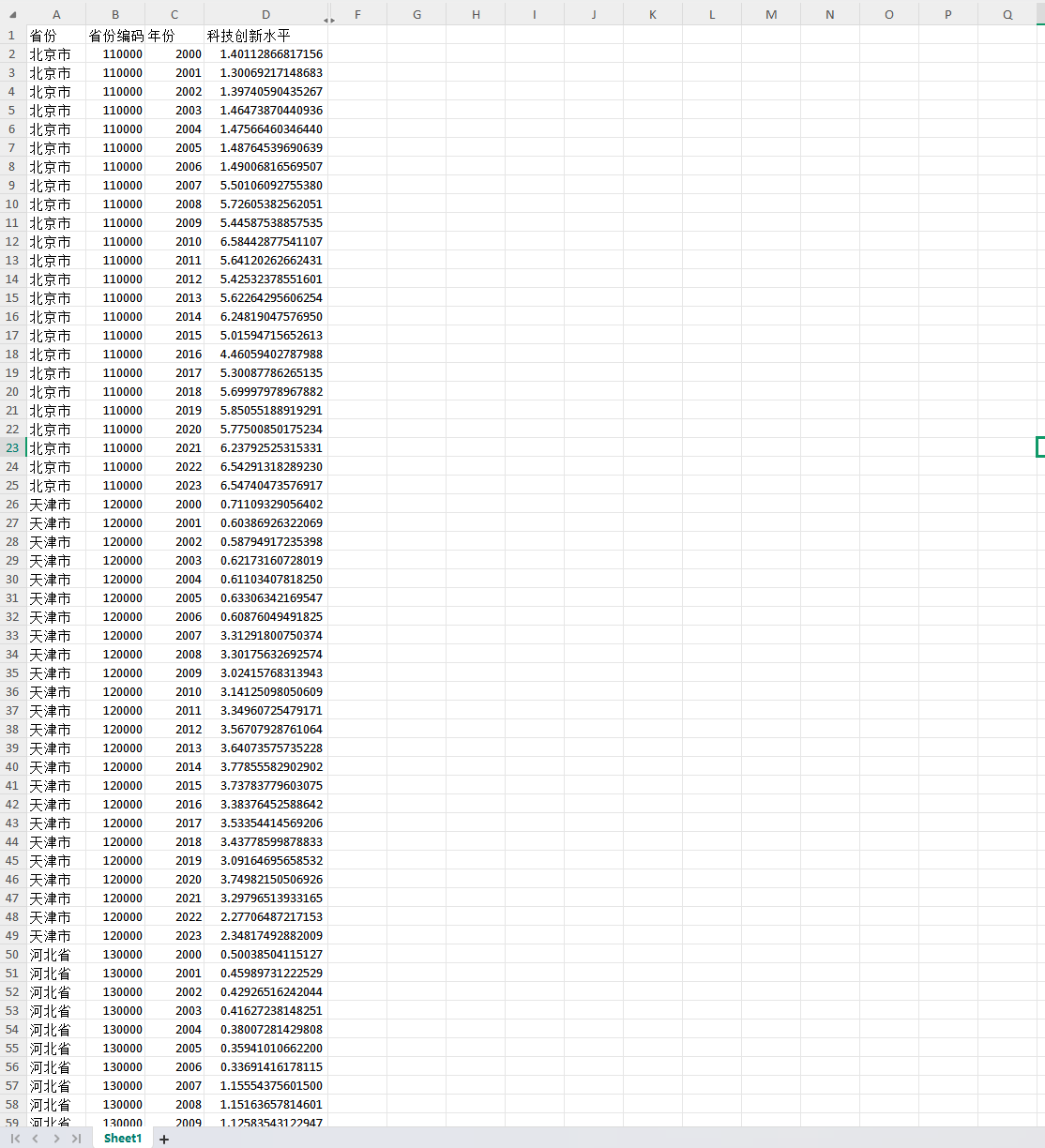 科技创新水平(地方财政科学技术支出/地方财政一般预算支出)*100,表示地方财政科学技术支出占一般预算支出的比重(百分比)