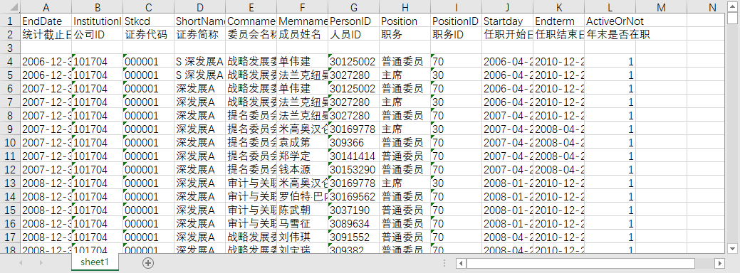 Startday [任职开始日期] - 以YYYY-MM-DD列示,部分缺少在相应位置上以00表示,如1993年12月某日表示为1993-12-00。