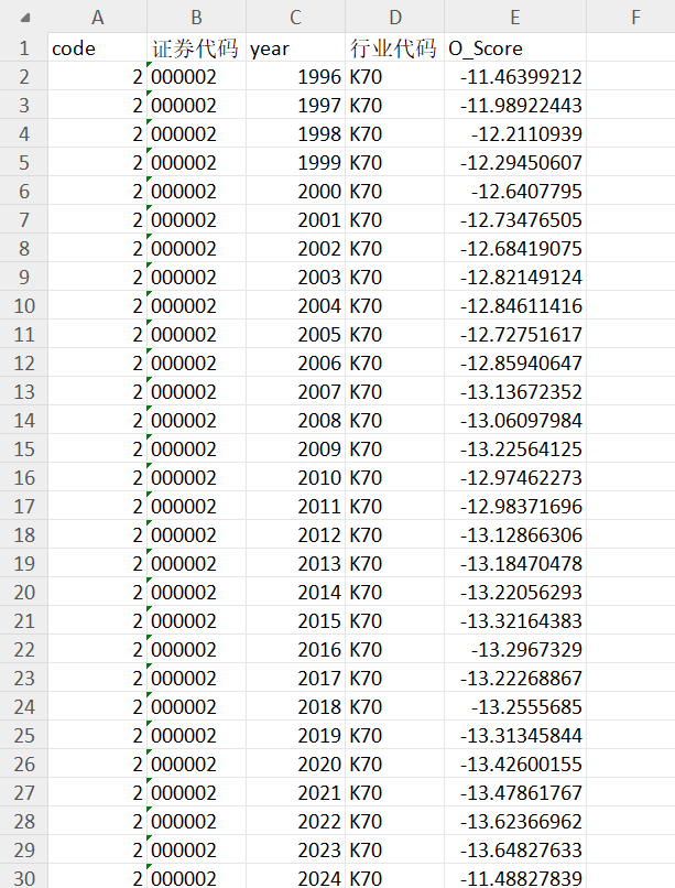 O-Score 的值越高代表企业破产风险越大。