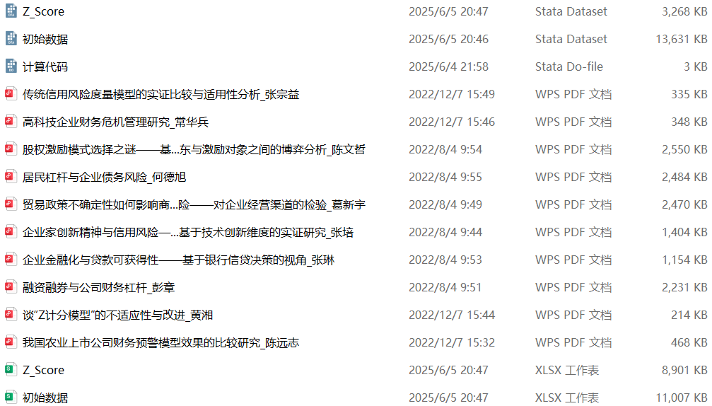 [7]张宗益,朱小宗,耿华丹,吴俊.传统信用风险度量模型的实证比较与适用性分析[J].预测,2005(02):55-59.(Z-score1、Z-score3)