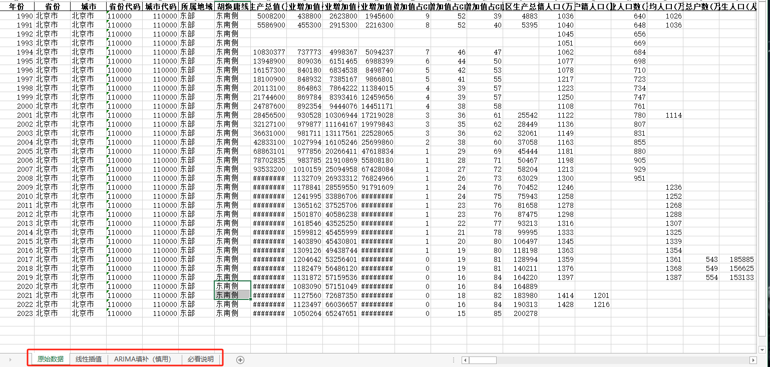中国地级市面板统计数据库(包含四个页签:原始数据、线性插值、ARIMA填补、有效统计值四个页签)