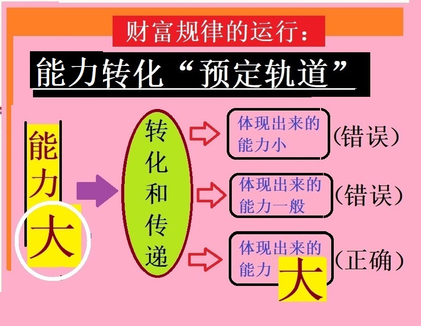 由能力转化“预定轨道”可见,在“能力的转化机制”中,能力大,就富裕;相反,能力小,就贫困。