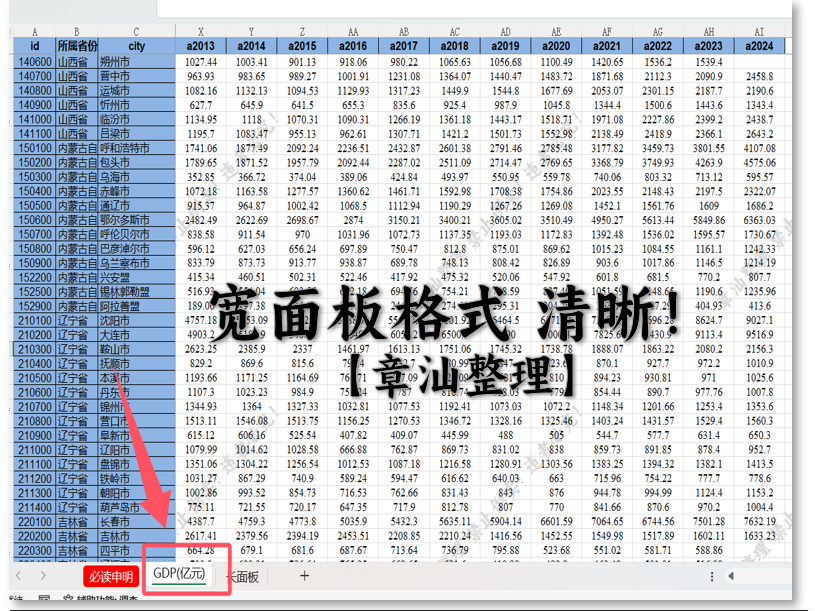 - 336地级市GDP(亿元),从1994至2024年,几乎无缺失;