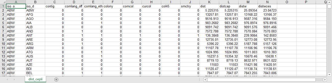 CEPII数据库2025全球世界各国地区间地理距离与中国地理距离共同边界共同语言殖民关系等