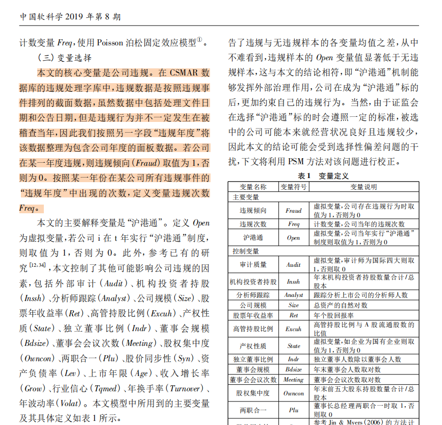 - 邹洋,张瑞君,孟庆斌,等.资本市场开放能抑制上市公司违规吗?一一来自“沪港通"的经验证据口.中国软科学.2019(08):120-134