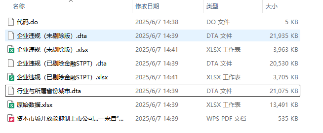 - 文件格式:Dta格式(使用Stata打开)、Xlsx格式(使用Excel打开)
