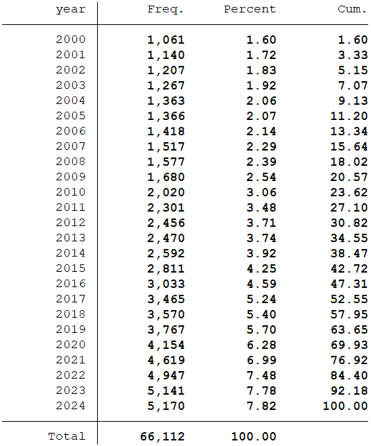 分年份数据量统计: