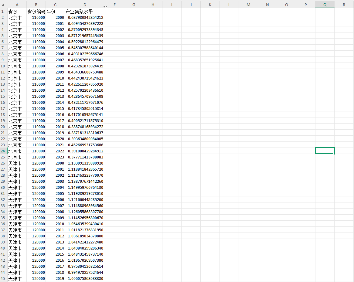 产业集聚水平=(地区工业增加值/全国工业增加值)/(地区生产总值/全国