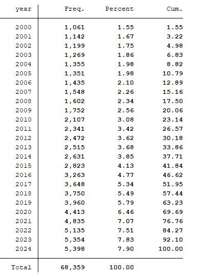 经管之家:momingiqmiao7 欢迎关注,分享更多实用的数据,独家发布,严禁转载获利,转载必究,有任何问题在可以帖子下方回复,及时回复 批量购买可享优惠 【关注】【帖子索引2023年】【帖子索引2022年】【帖子索引2021年】【使用常见问题】【点击查看更多帖子】【Stata软件下载】【Stata免费学习资料】